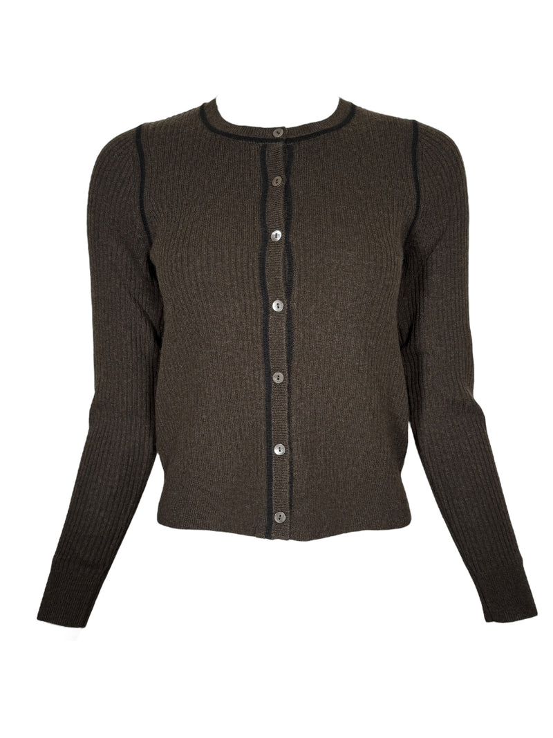 REPEAT CASHMERE RIB CARDIGAN - DARK BROWN