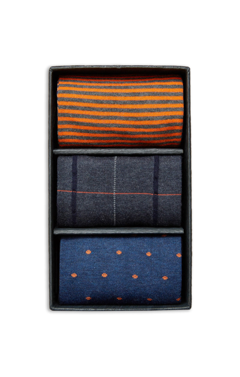 MARCOLIANI CALF SOCK GIFT BOX OF 3 - ORANGE/BLUE MIX
