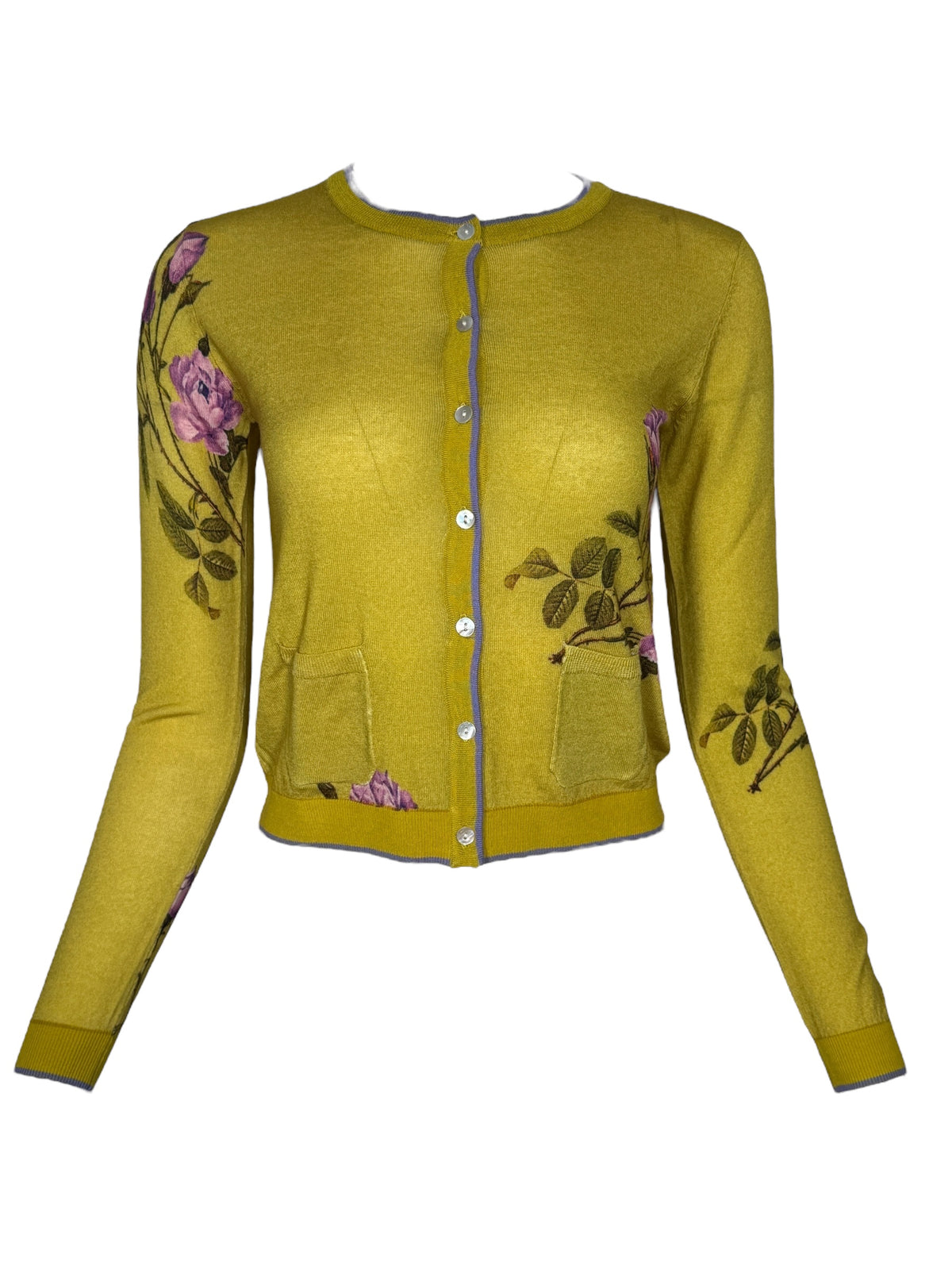 IN BED WITH YOU WOOL CARDIGAN - CHARTREUSE WITH ROSES