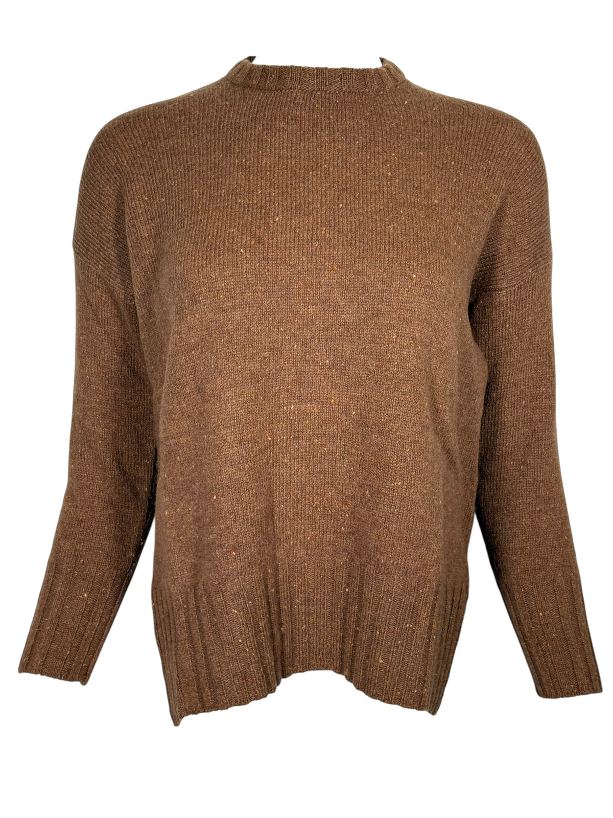 BASE MILANO TWEED ROUNDNECK SWEATER - CAFFE