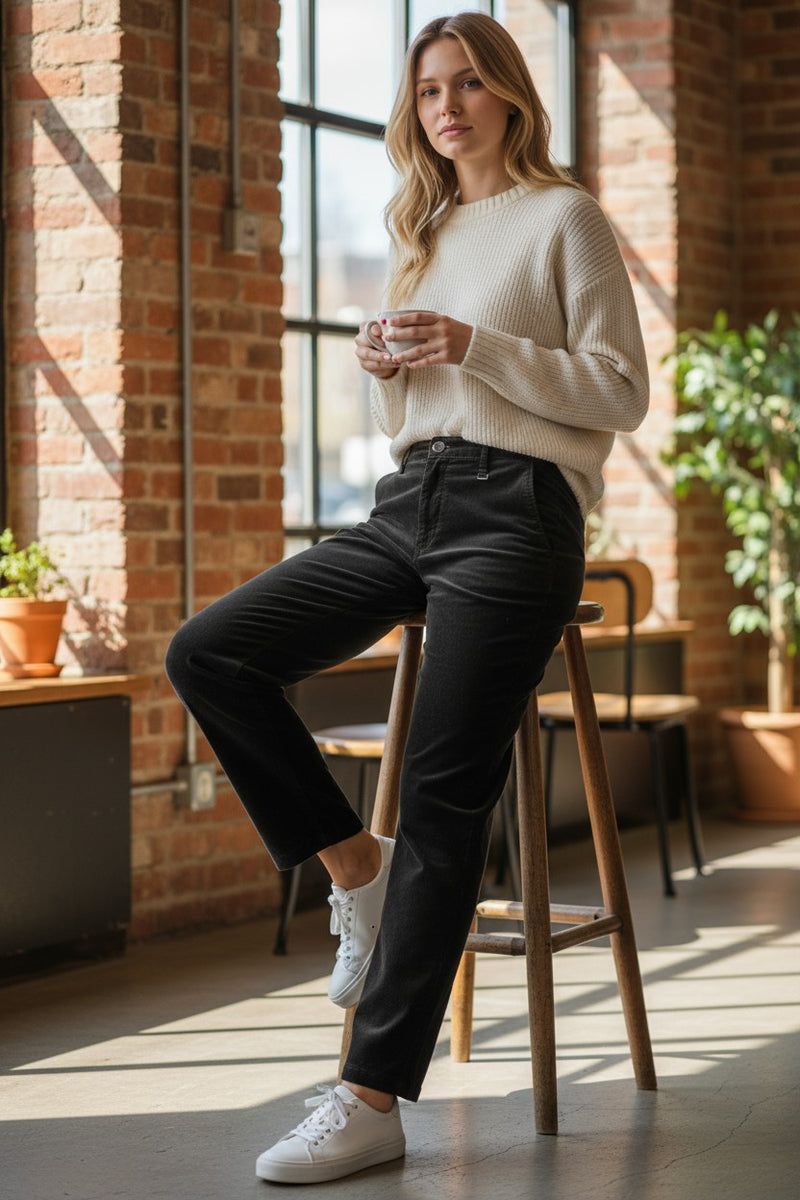 MAC WOMEN'S CHINO TURN UP CORDUROY PANT - BLACK