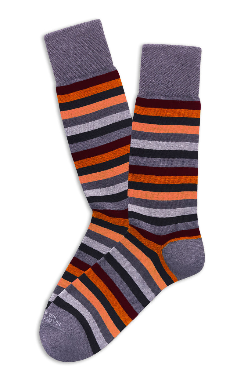 MARCOLIANI RAINBOW STRIPE CALF SOCK - CHARCOAL GINGER