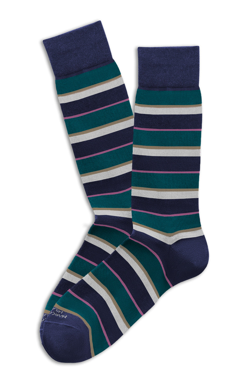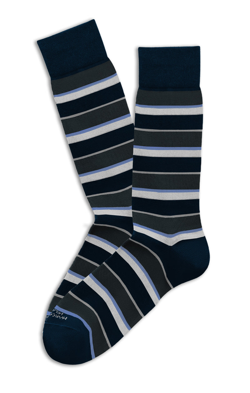 MARCOLIANI SCALA STRIPE CALF SOCK SOCK - NAVY BLUE