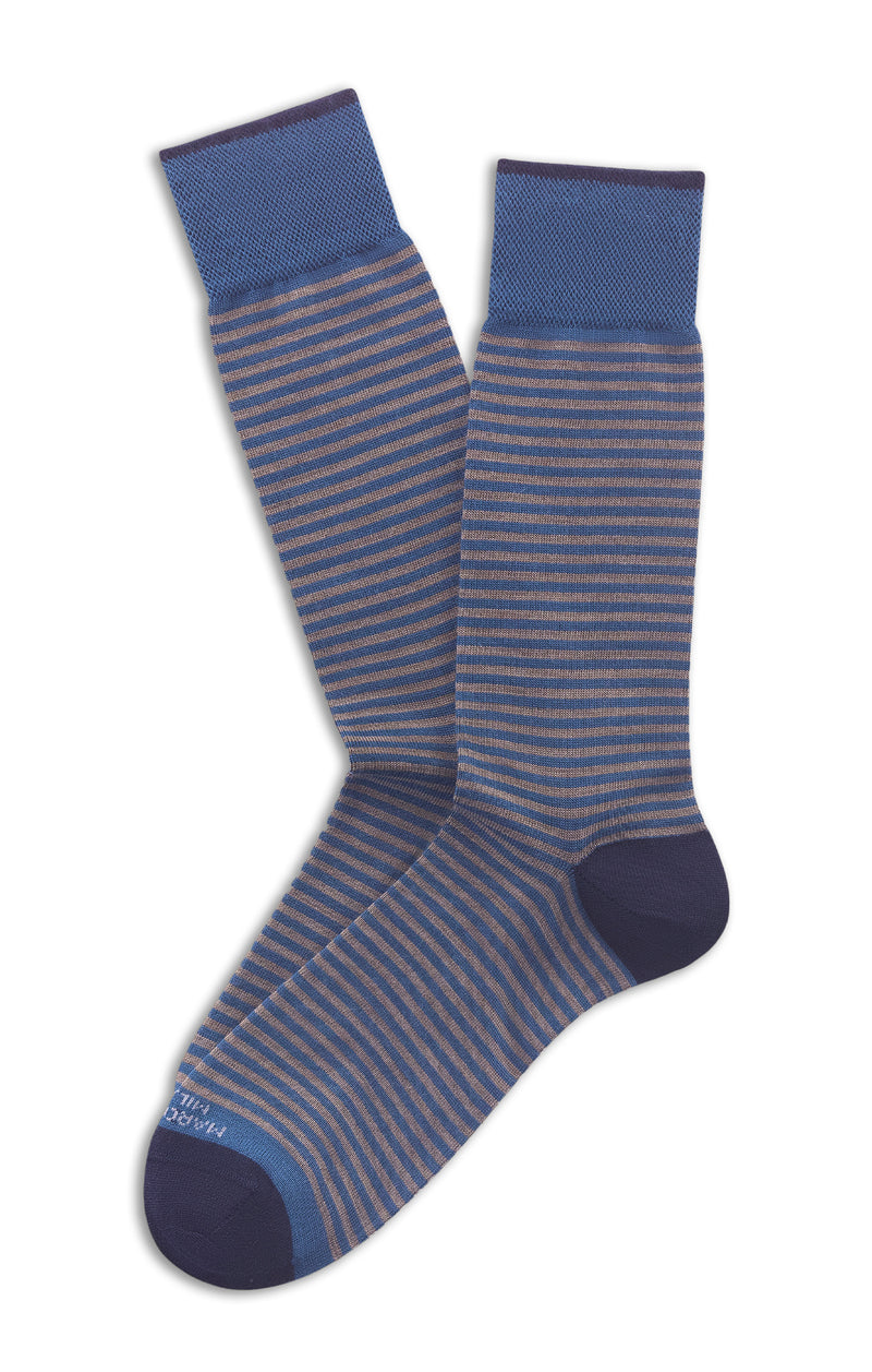 MARCOLIANI COMO STRIPE CALF SOCK - NAVY