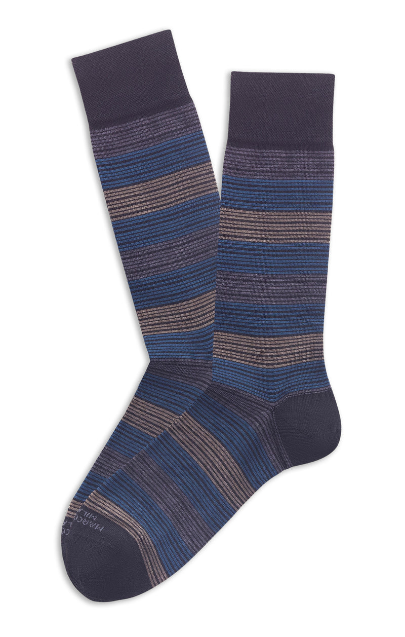 MARCOLIANI PALIO STRIPE CALF SOCK - NAVY