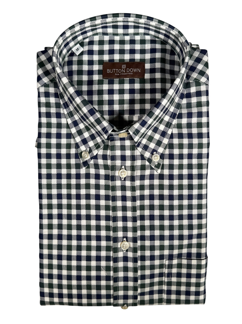 BUTTON DOWN SPORT SHIRT - NAVY/GREEN GINGHAM