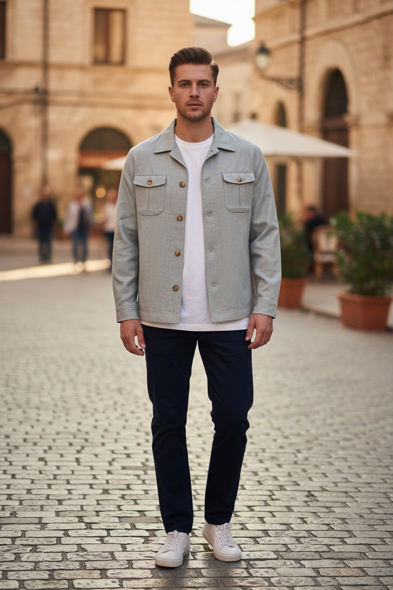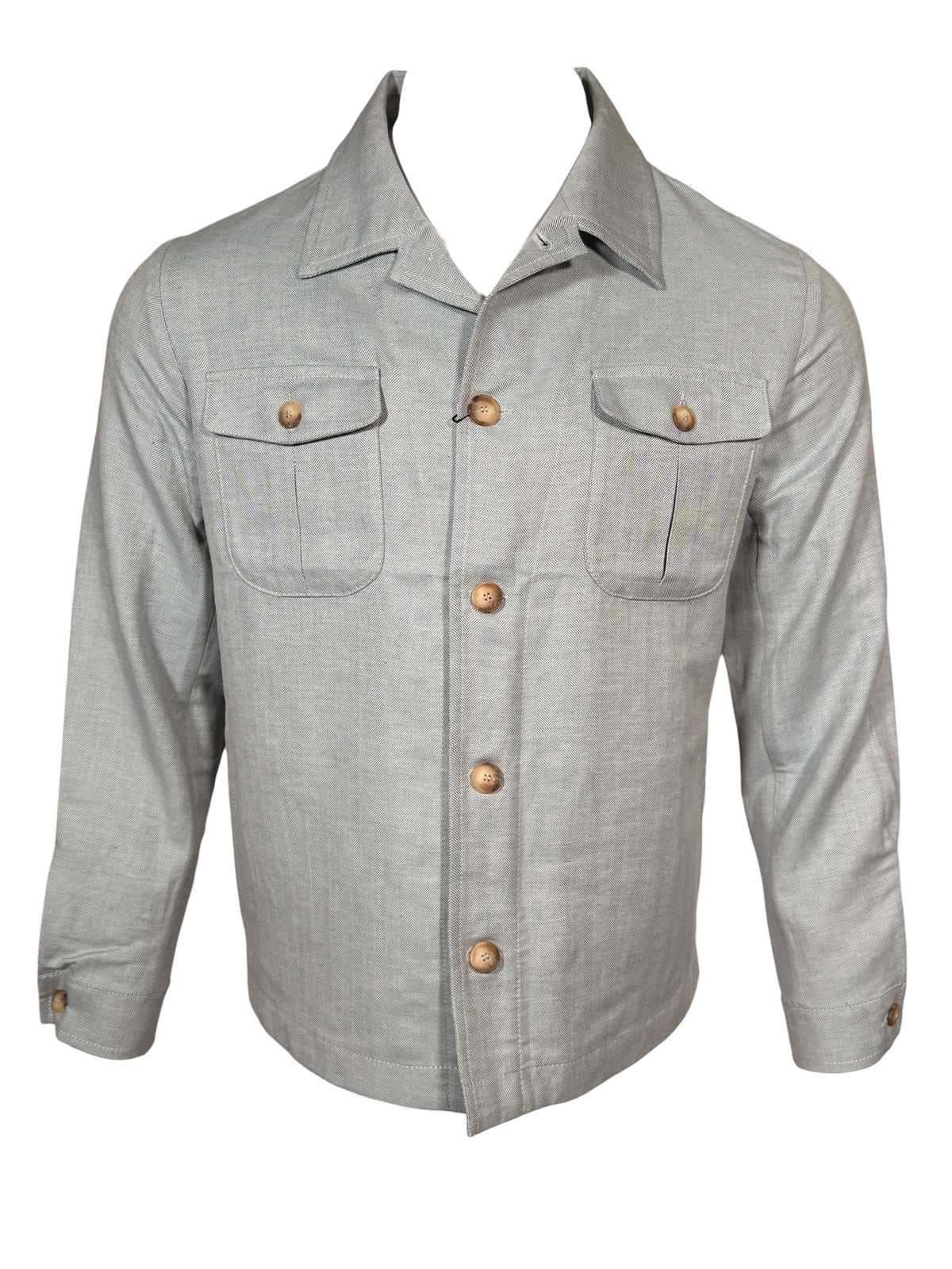 BUTTON DOWN MEN’S HERRINGBONE SAFARI JACKET - STEEL BLUE