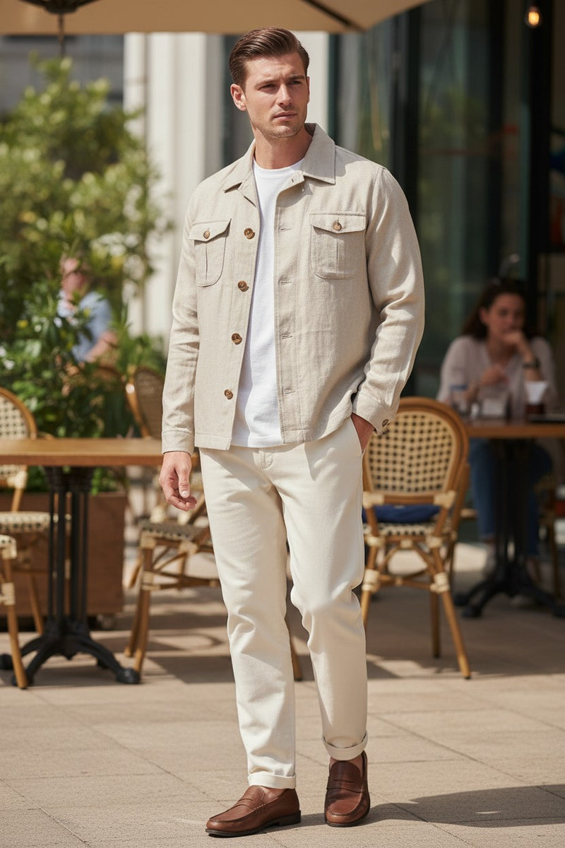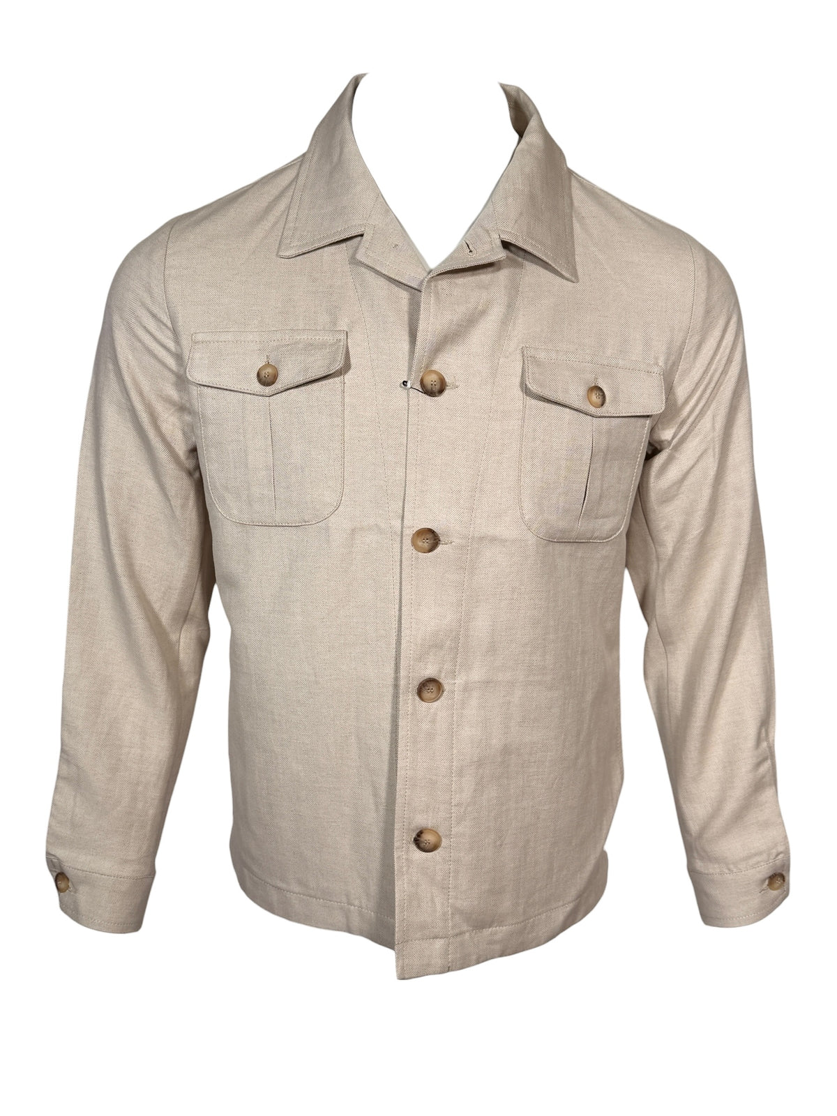BUTTON DOWN MEN’S HERRINGBONE SAFARI JACKET - TAN