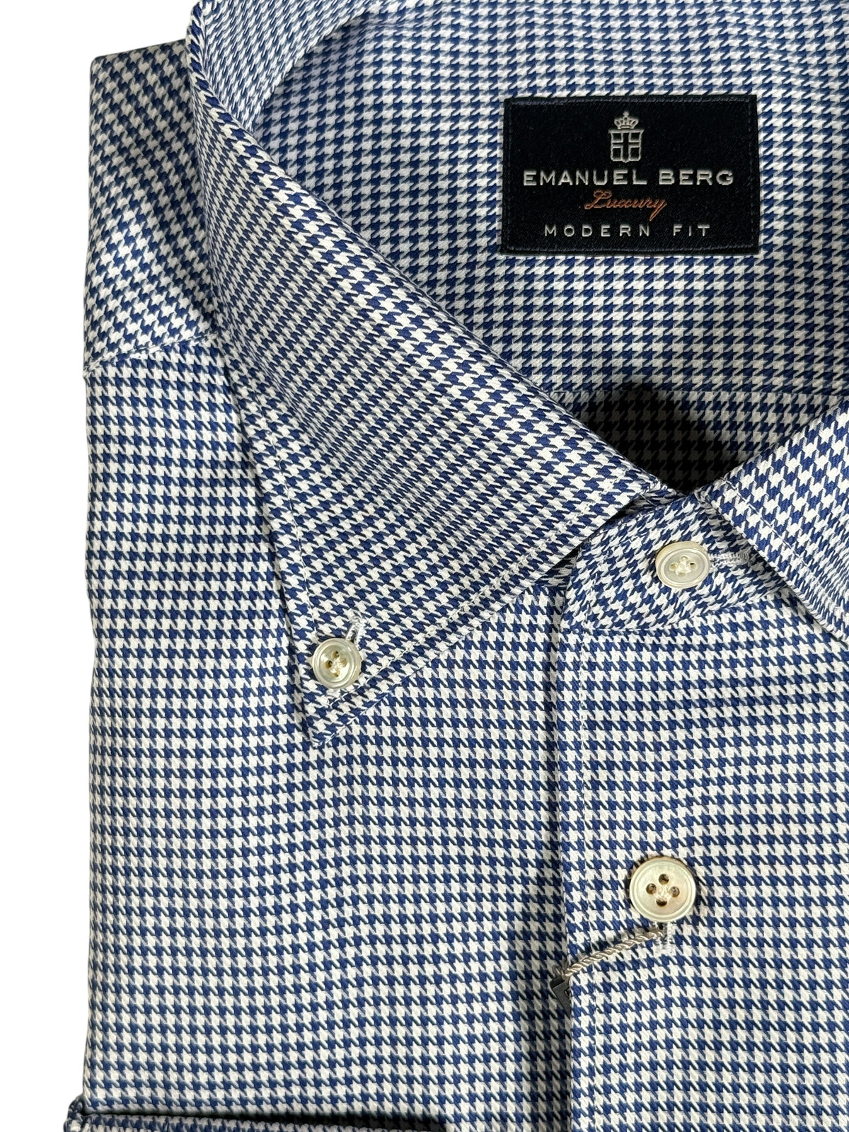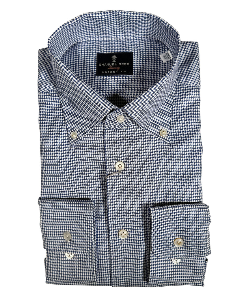 EMANUEL BERG HOUNDSTOOTH TWILL PREMIUM LUXURY MEN'S SHIRT - NAVY