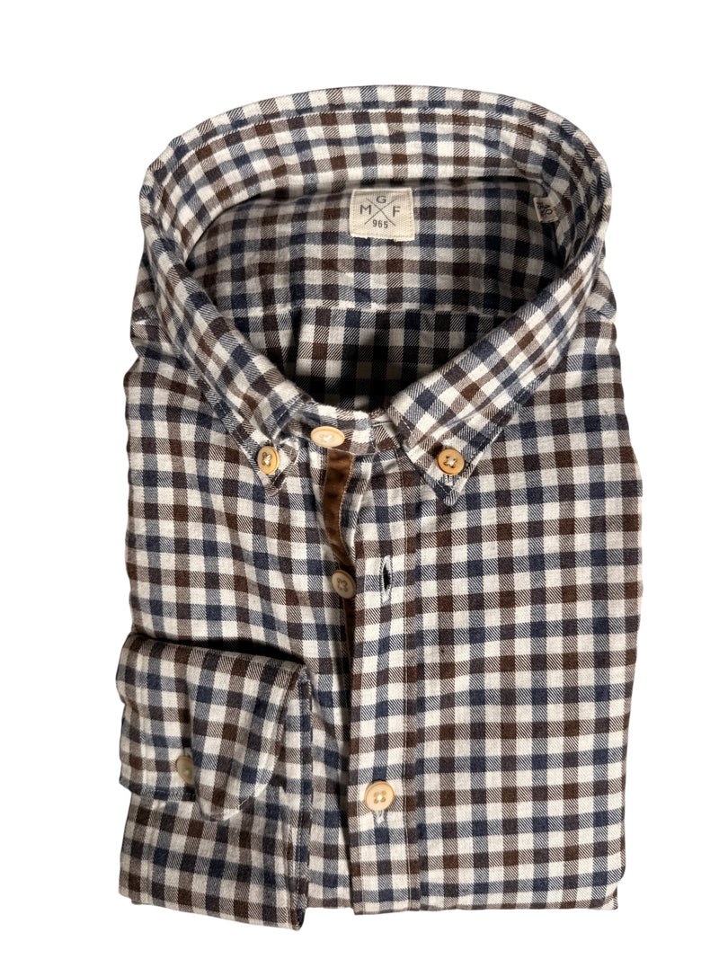 GMF 965 MEN'S SPORT SHIRT - MID BLUE/BROWN OUTLINED CHECK
