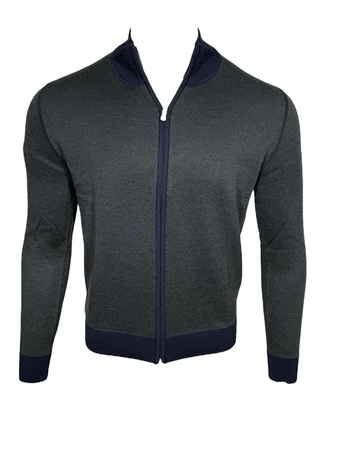 BUTTON DOWN BIRDSEYE FULL ZIP SWEATER - GREEN/NAVY