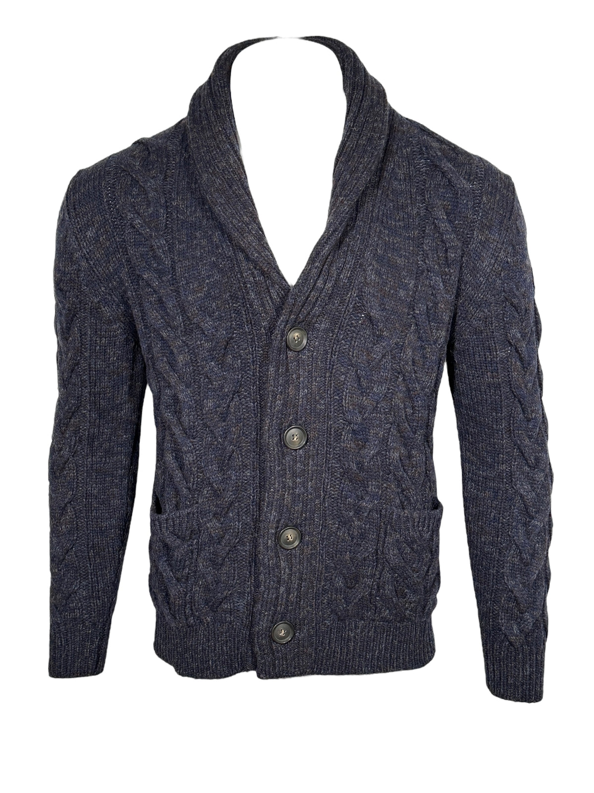 SETTEFILI CASHMERE - MEN'S CABLE SHAWL CARDIGAN - NAVY & OLIVE MIX