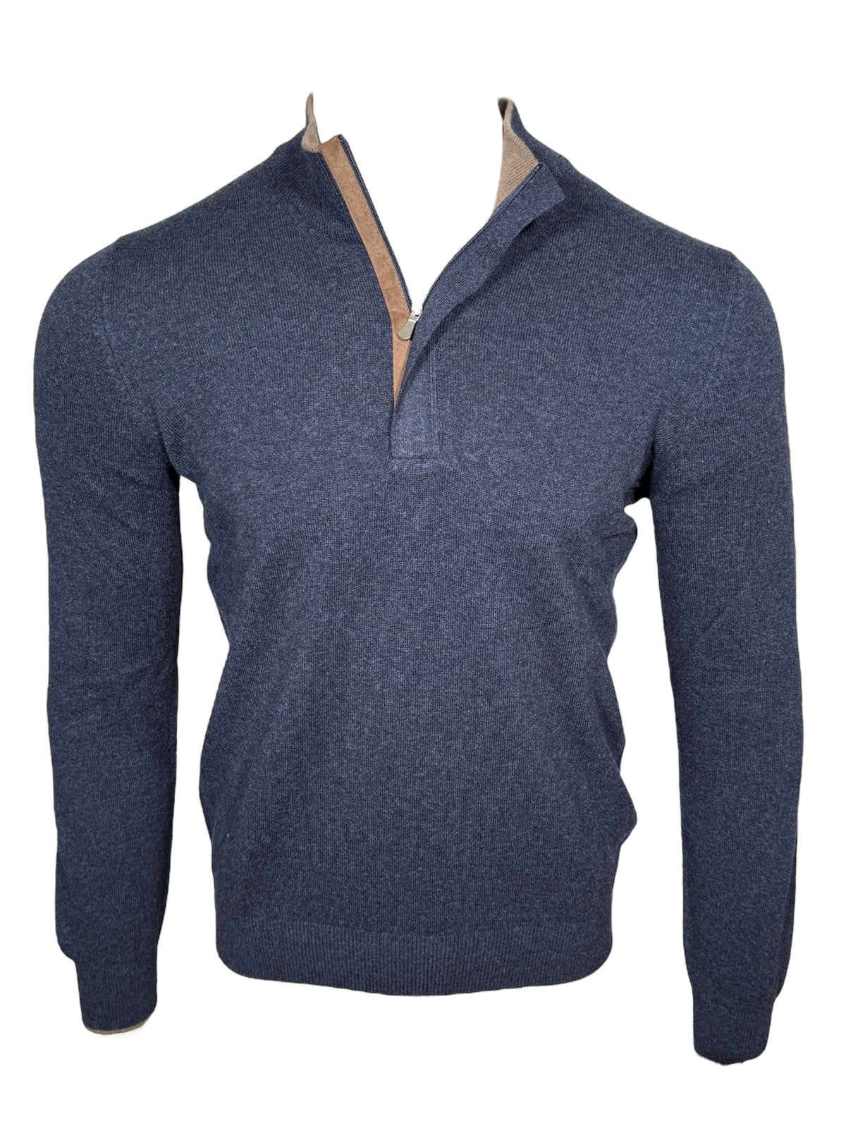 BUTTON DOWN WOOL/CASHMERE 1/4 ZIP SWEATER - NAVY