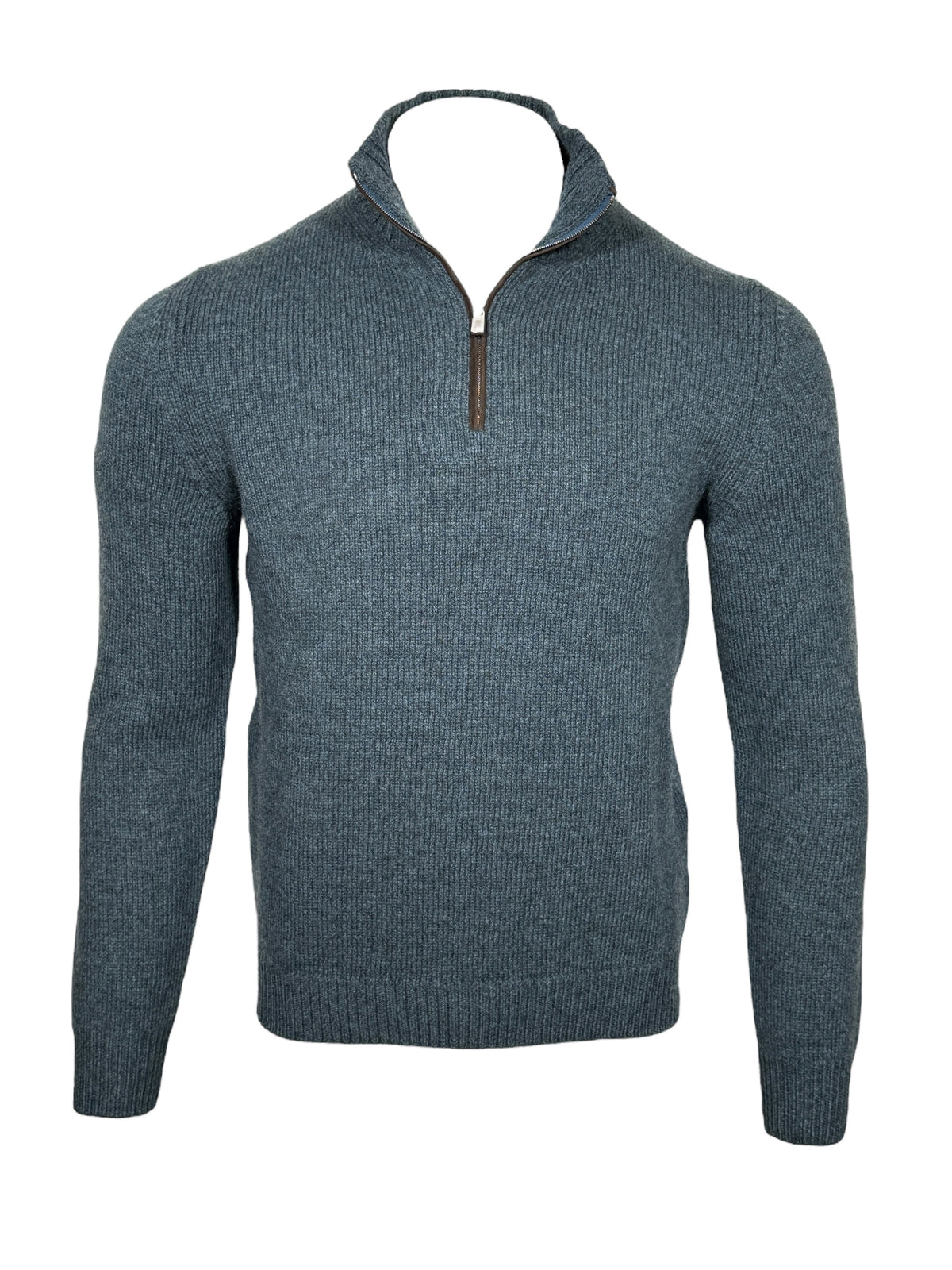 FIORONI CASHMERE MEN'S CHAIN CABLE 1/4 ZIP SWEATER - PETROL