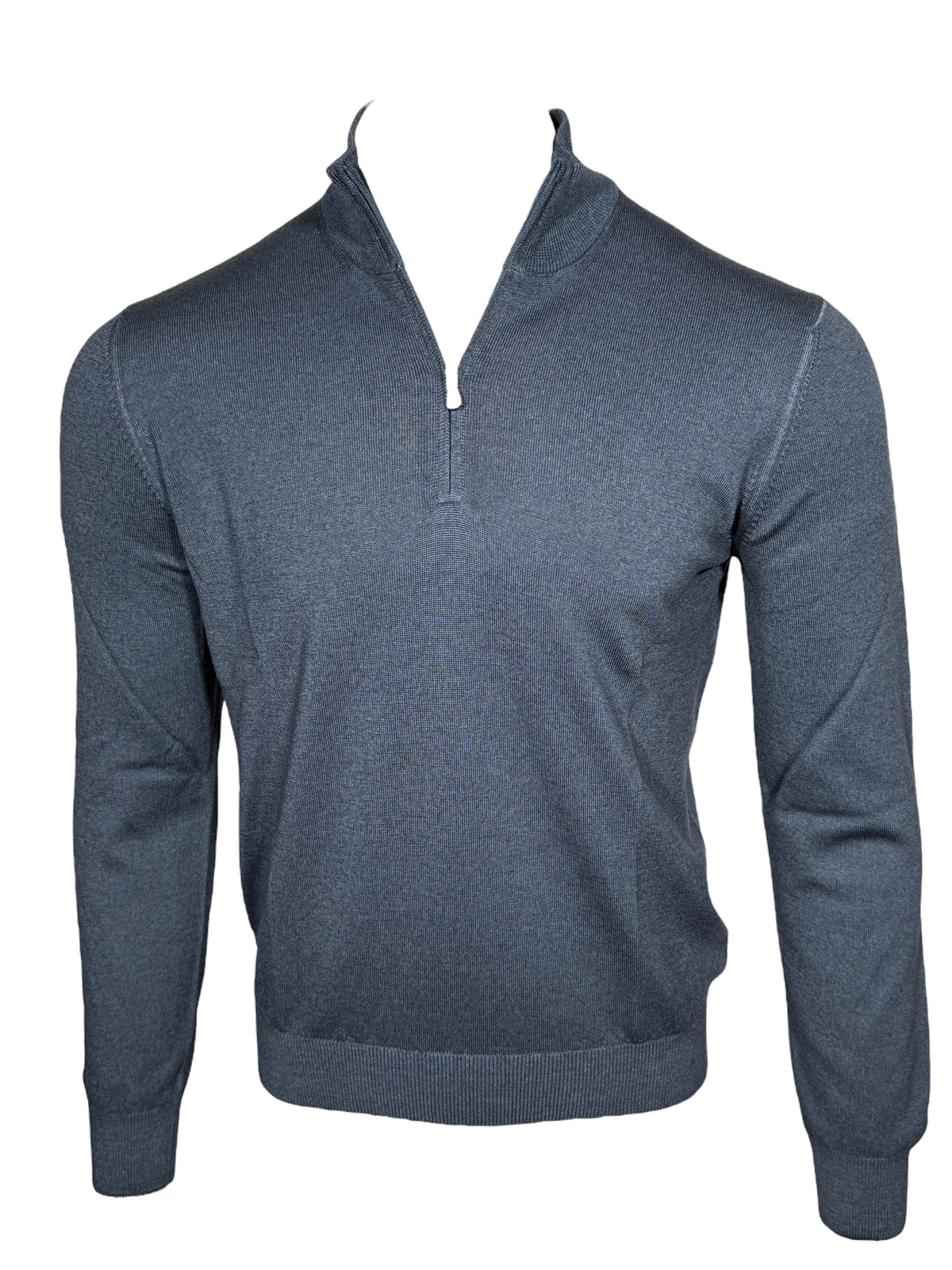 FIORONI CASHMERE MEN'S SCALE KNIT 1/4 ZIP SWEATER - DENIM