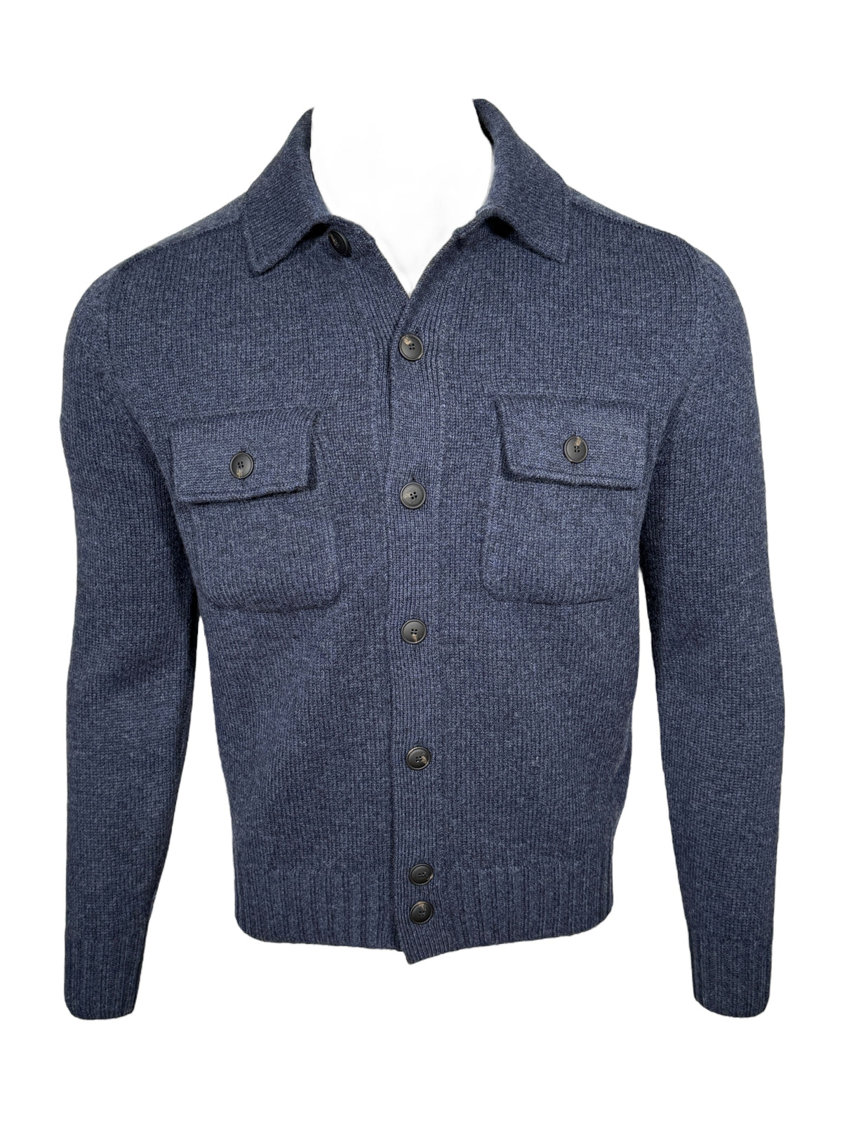 BUTTON DOWN MERINO CARDIGAN - DARK DENIM