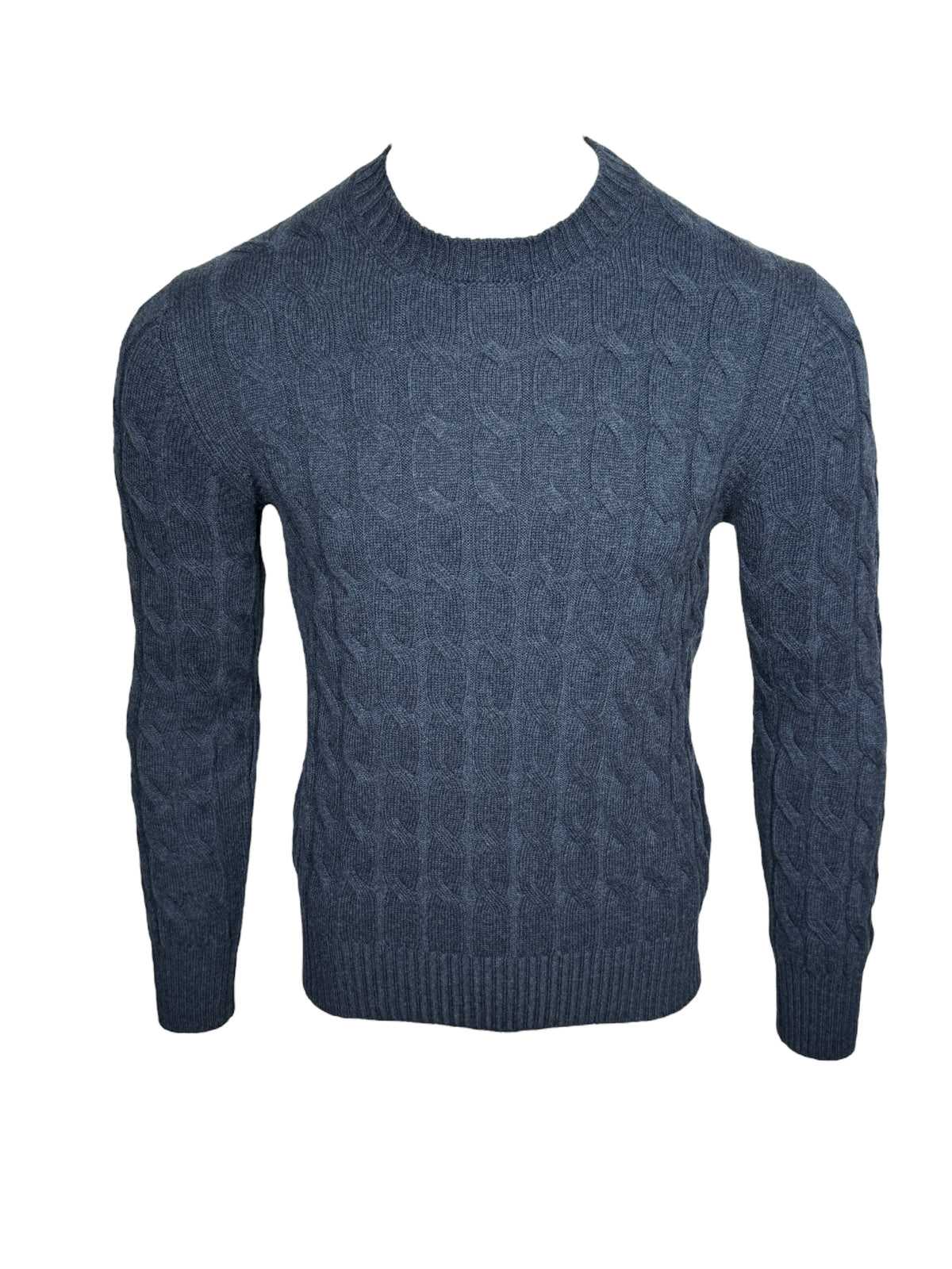 BUTTON DOWN CABLE CREW SWEATER - DENIM