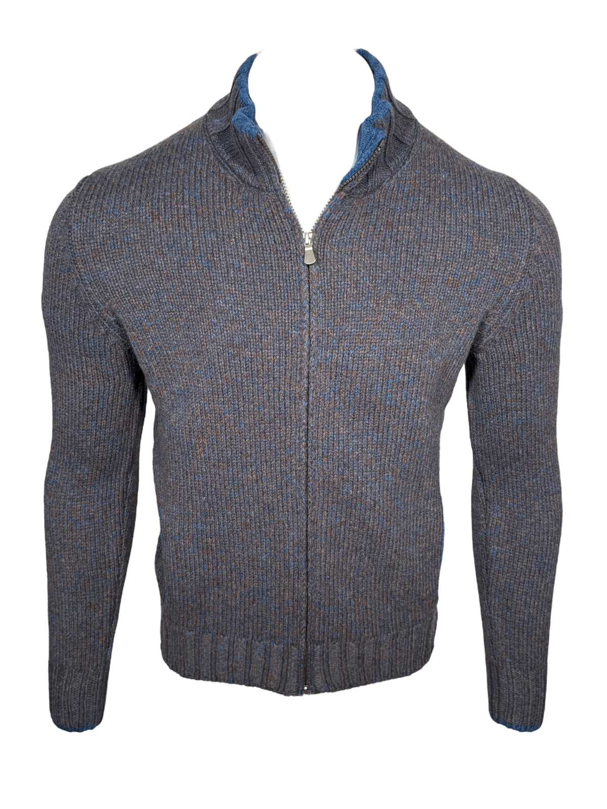 BUTTON DOWN MARL FULL ZIP SWEATER - BROWN/BLUE