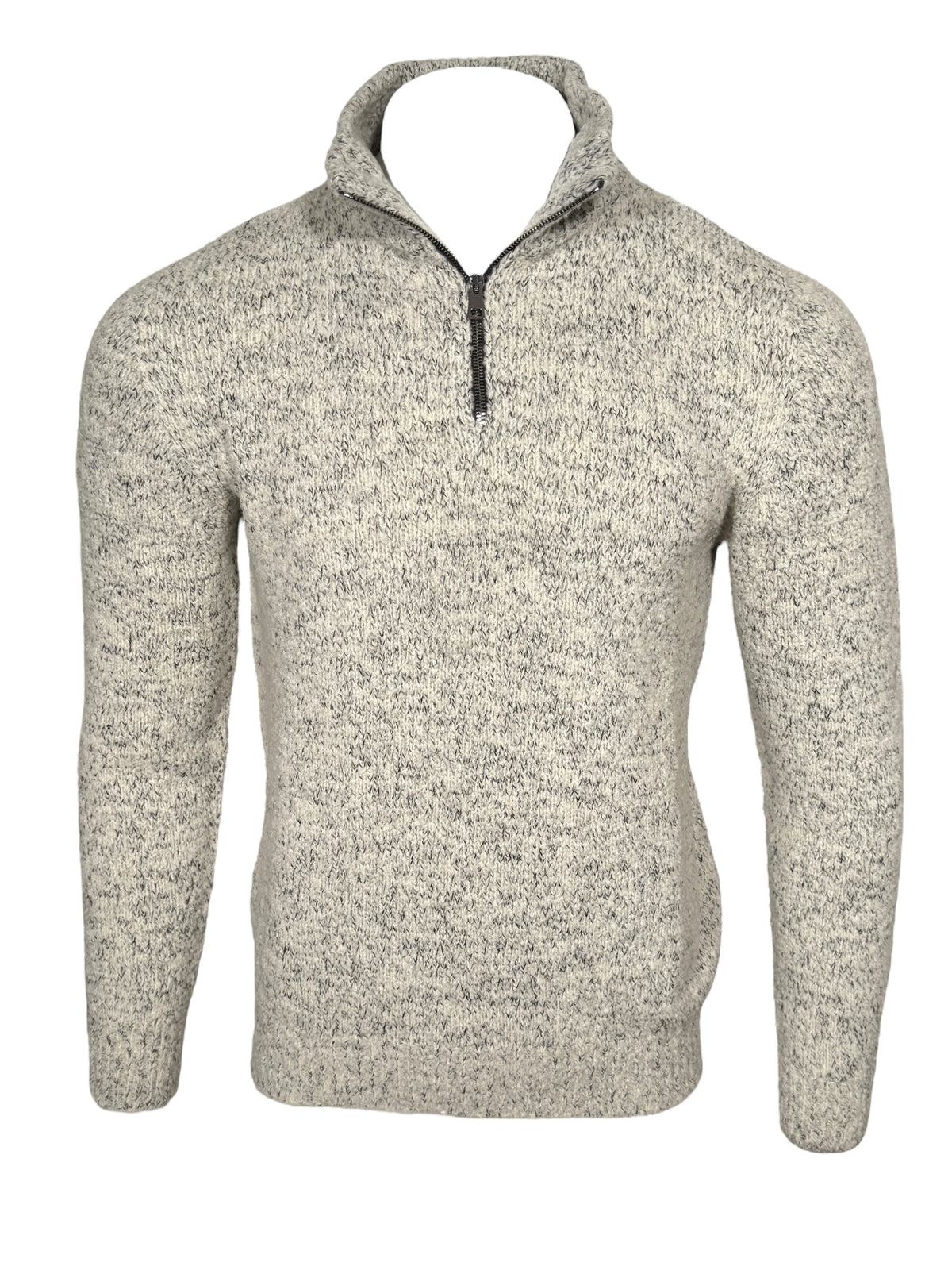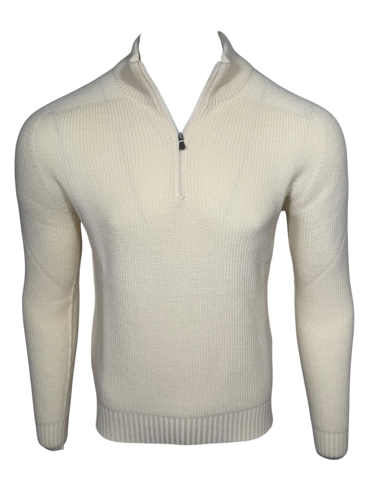 BUTTON DOWN RAINWOOL 1/4 ZIP SWEATER - IVORY