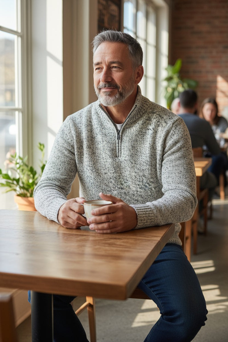 ADESI CASHMERE MEN'S TIPPED 1/2 ZIP SWEATER - INARI/JUTA
