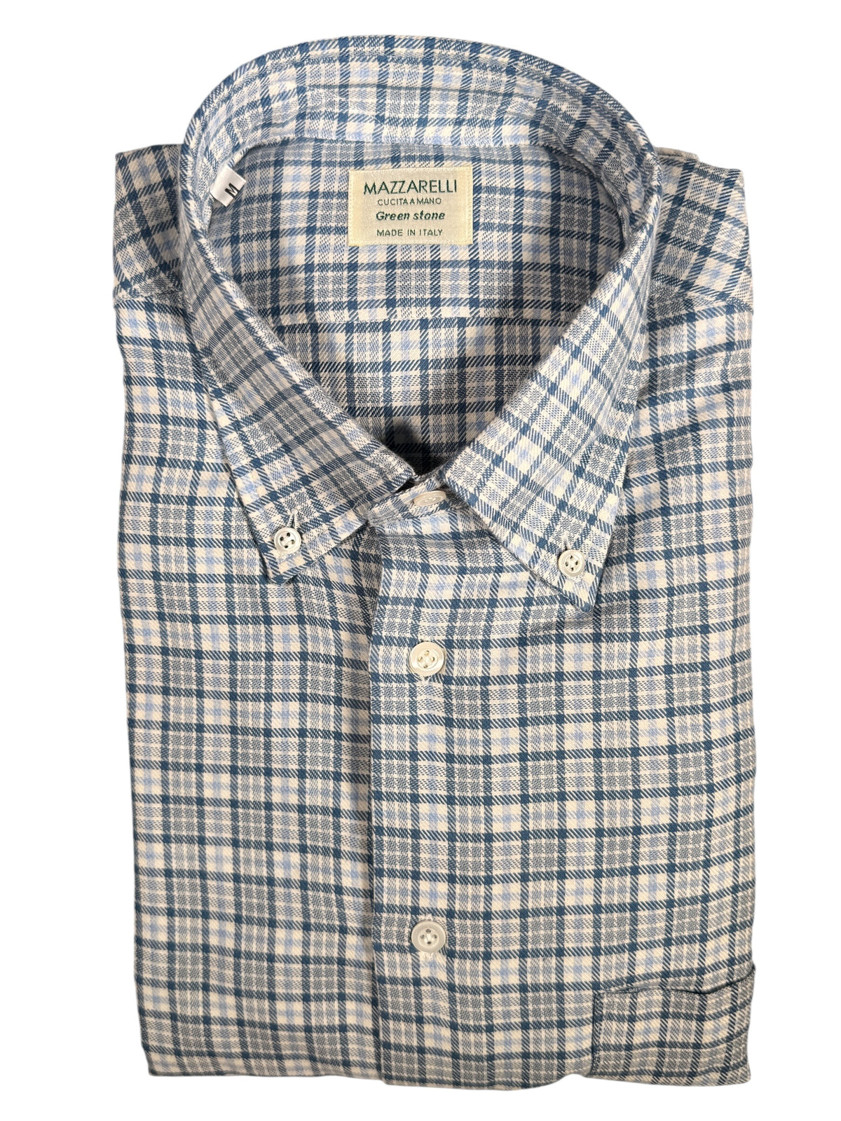MAZZARELLI SPORT SHIRT - LIGHT BLUE/NAVY PLAID