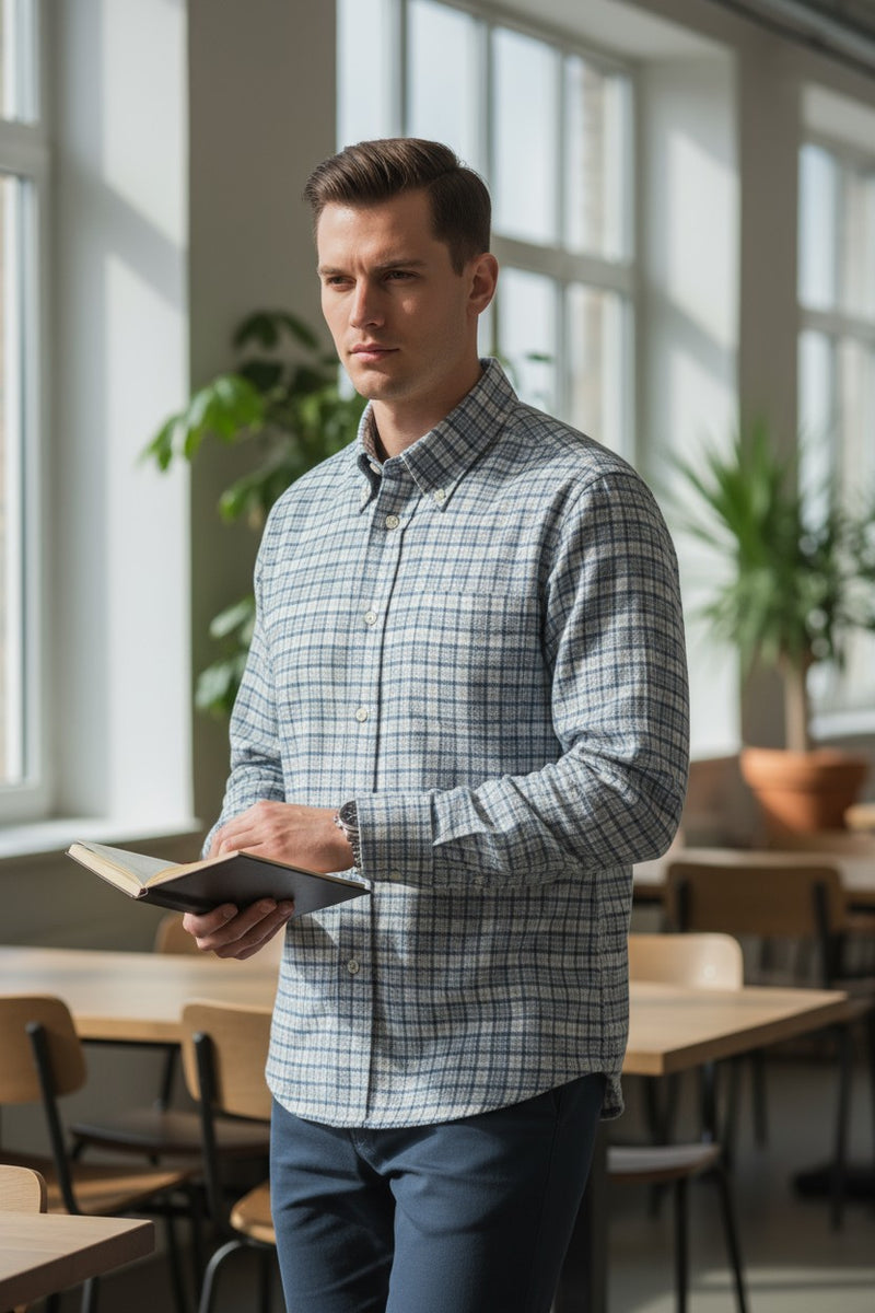 CALDER CARMEL MEN'S SHIRT - DENIM TWILL PLAID