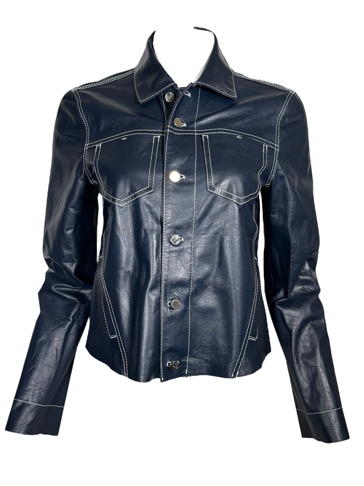 BLU ICE WOMEN'S LEATHER JACKET - NAVY