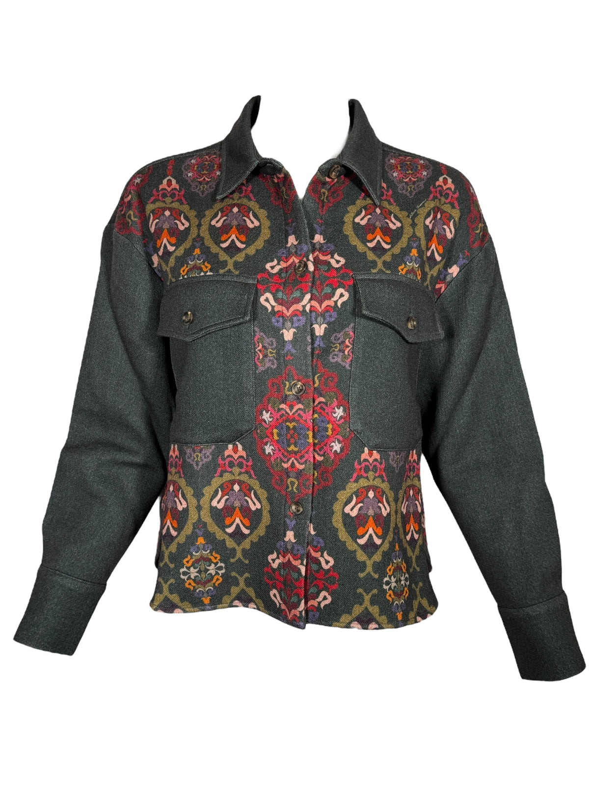 FRANCO FERRARI PRINT WOOL JACKET - GREEN