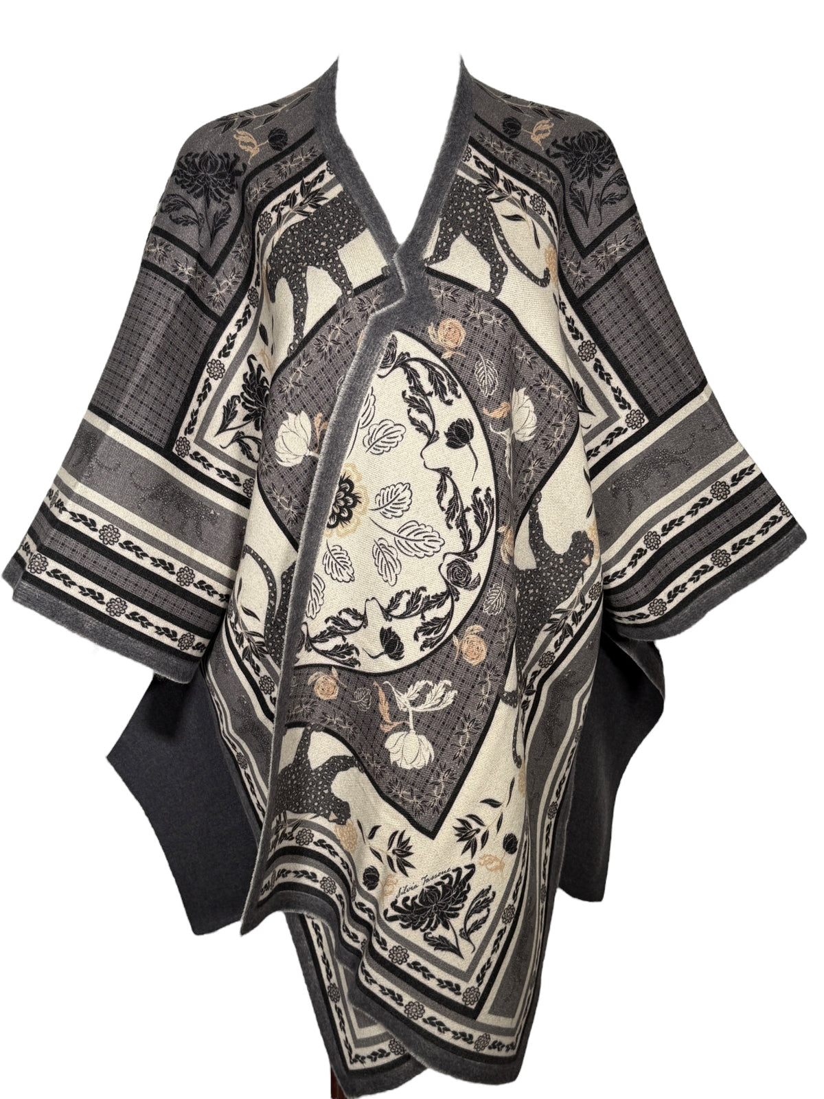 FRANCO FERRARI LEOPARD WOOL CAPE - GREY