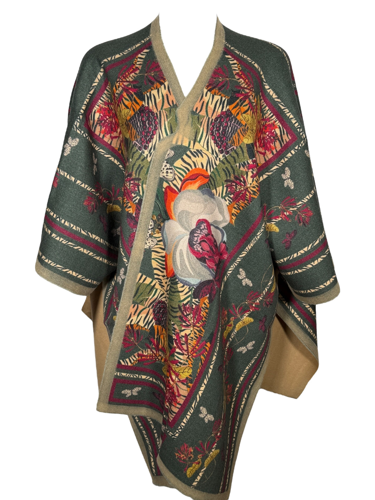 FRANCO FERRARI JUNGLE WOOL CAPE - GREEN