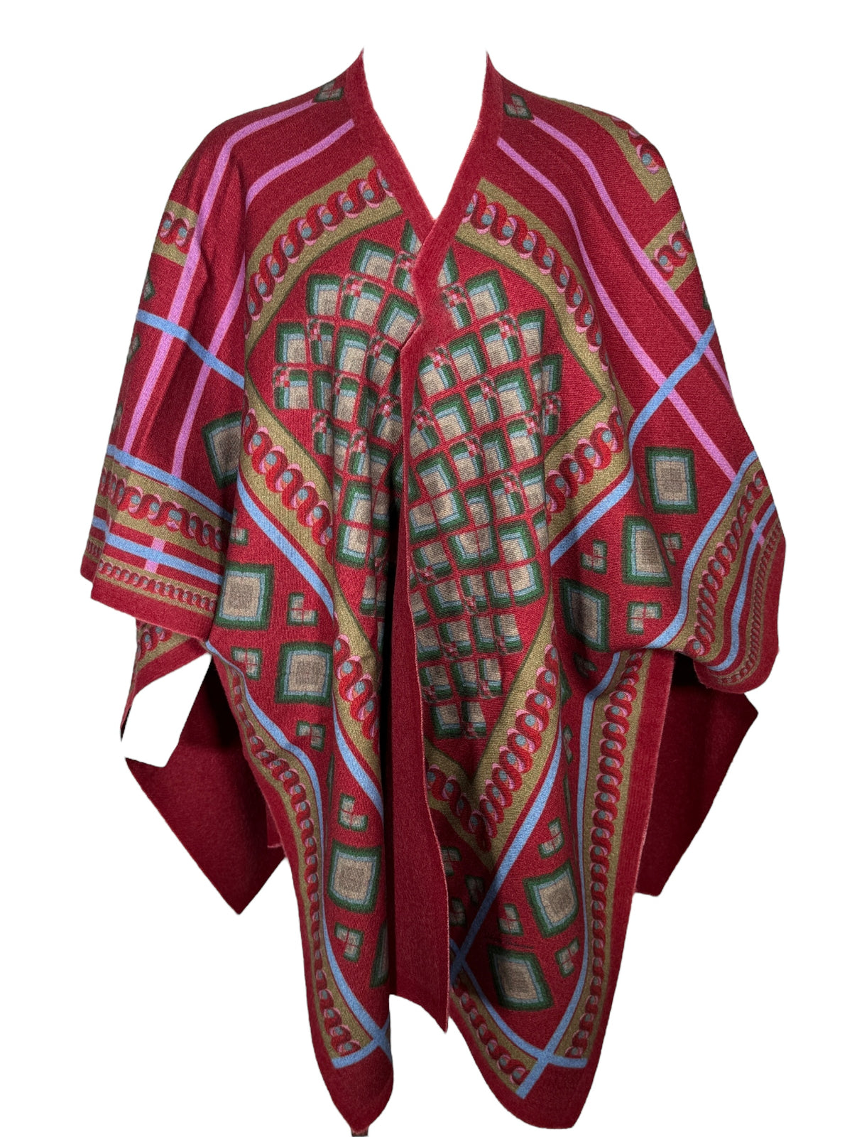 FRANCO FERRARI DIAMONDS WOOL CAPE - MERLOT