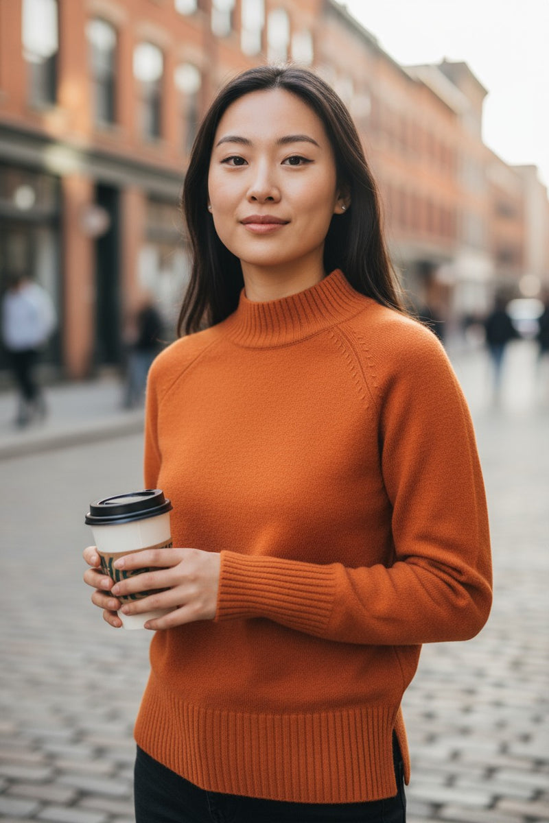 KINROSS HI LOW RIB TRIM FUNNEL SWEATER - BRANDY