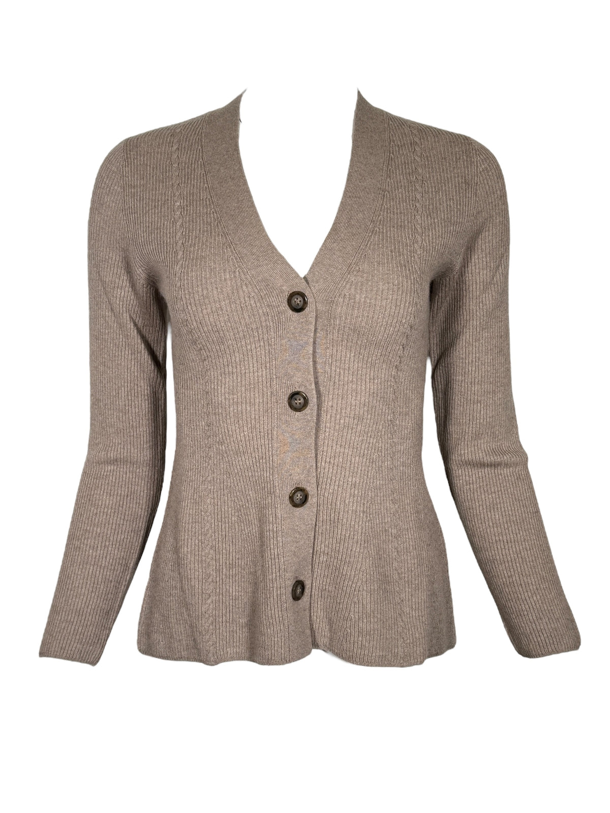 PUROTATTO WOOL/CASHMERE CABLE RIB CARDIGAN - NOCCIOLA