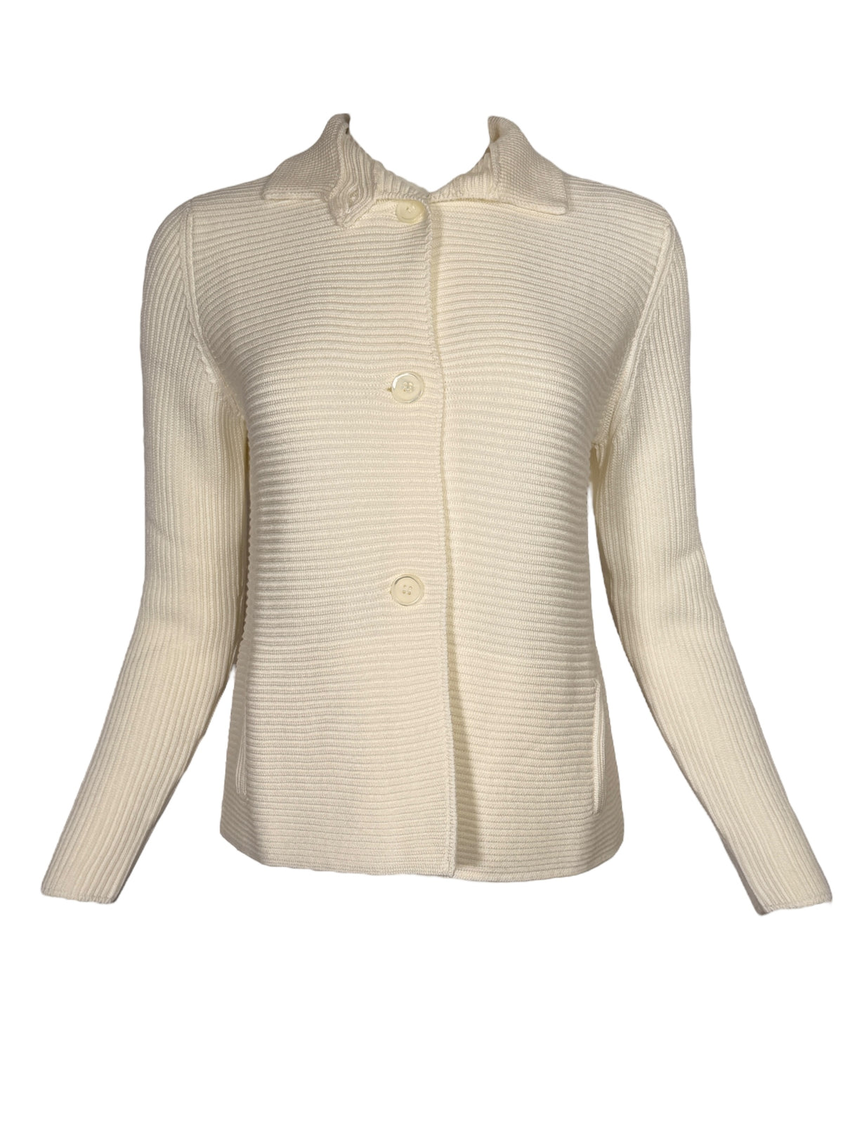 HUBERT GASSER HORIZONTAL RIB CARDIGAN - WINTER WHITE