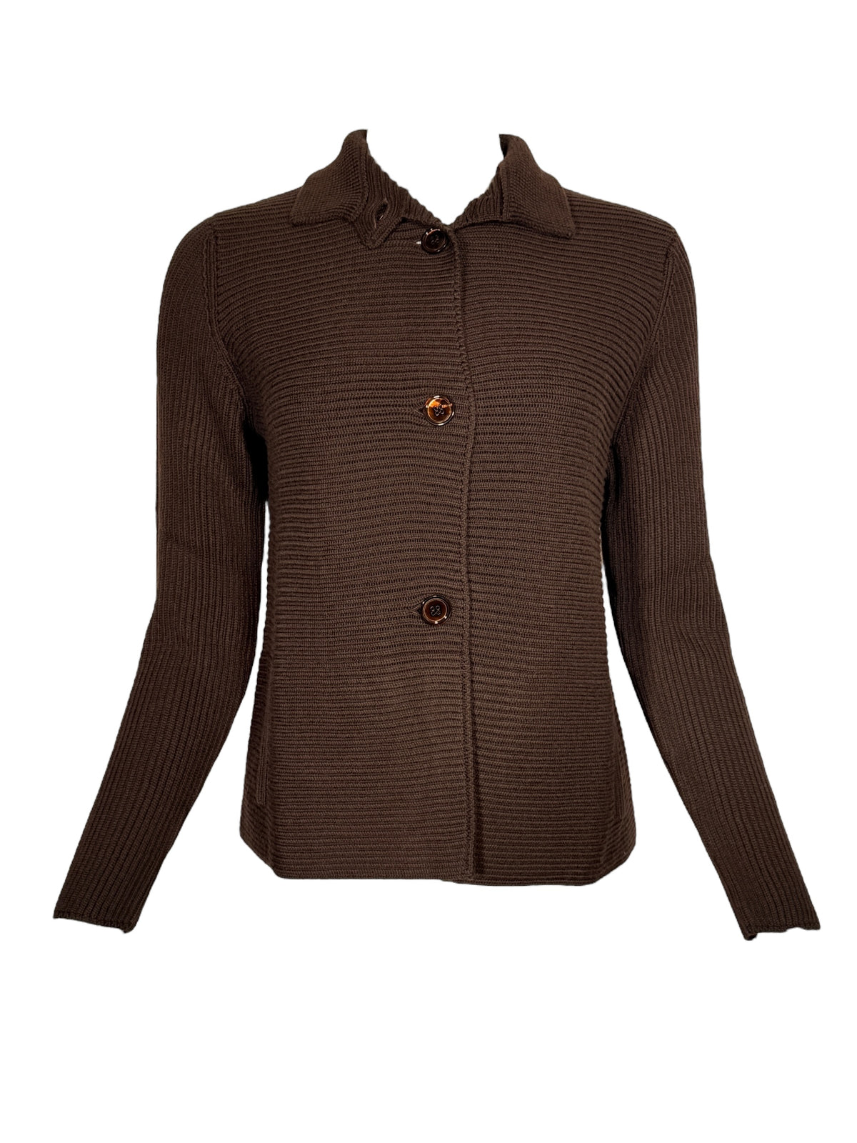 HUBERT GASSER HORIZONTAL RIB CARDIGAN - DARK BROWN