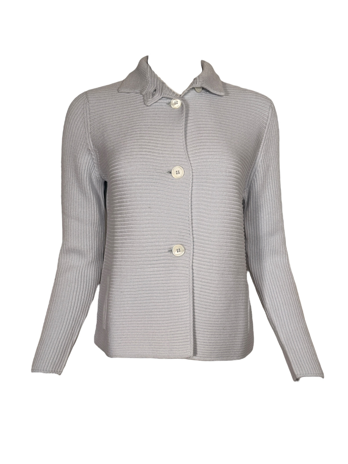 HUBERT GASSER HORIZONTAL RIB CARDIGAN - PALE BLUE