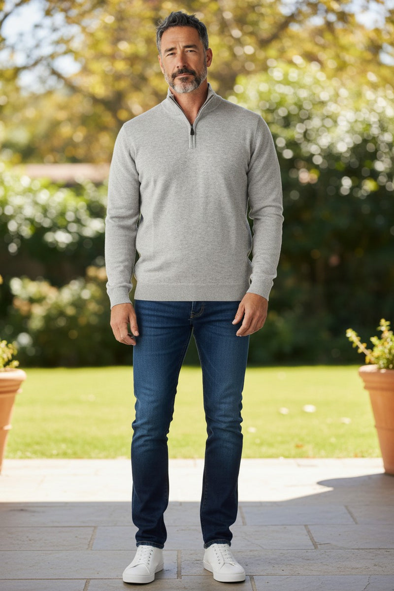 ALAN PAINE SELHURST QUARTER ZIP SWEATER - DOVE