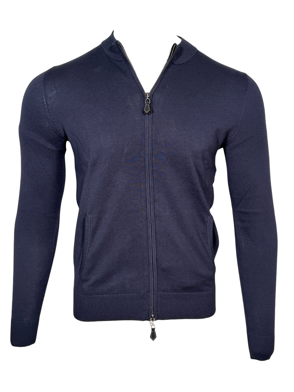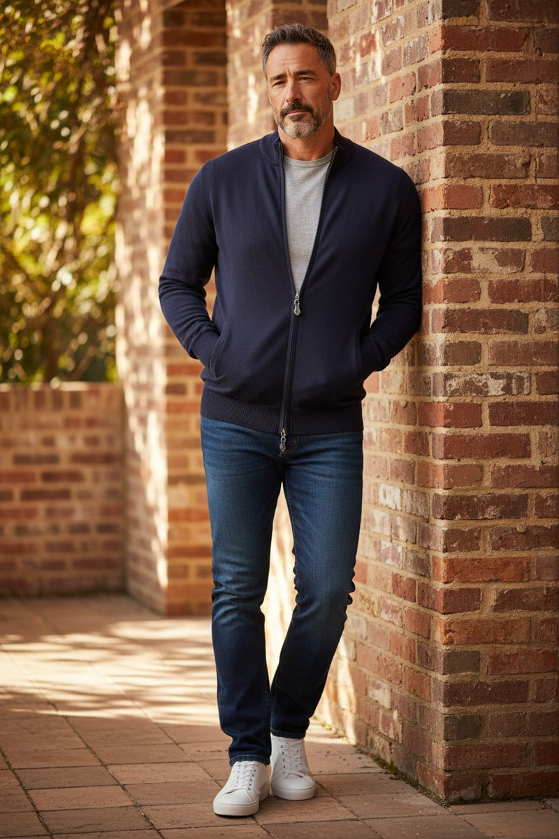 ALAN PAINE ROCOMBE FULL ZIP COTTON SWEATER - DARK NAVY