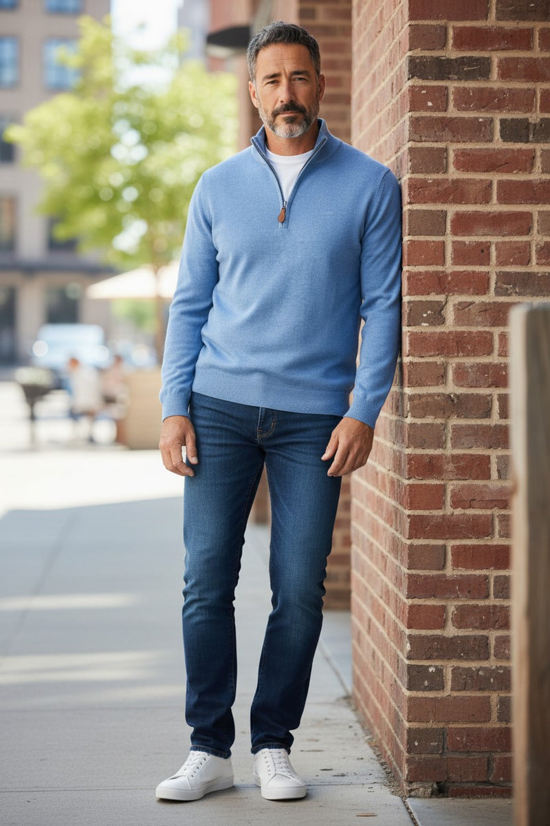 ALAN PAINE SELHURST QUARTER ZIP SWEATER - CAROLINA BLUE