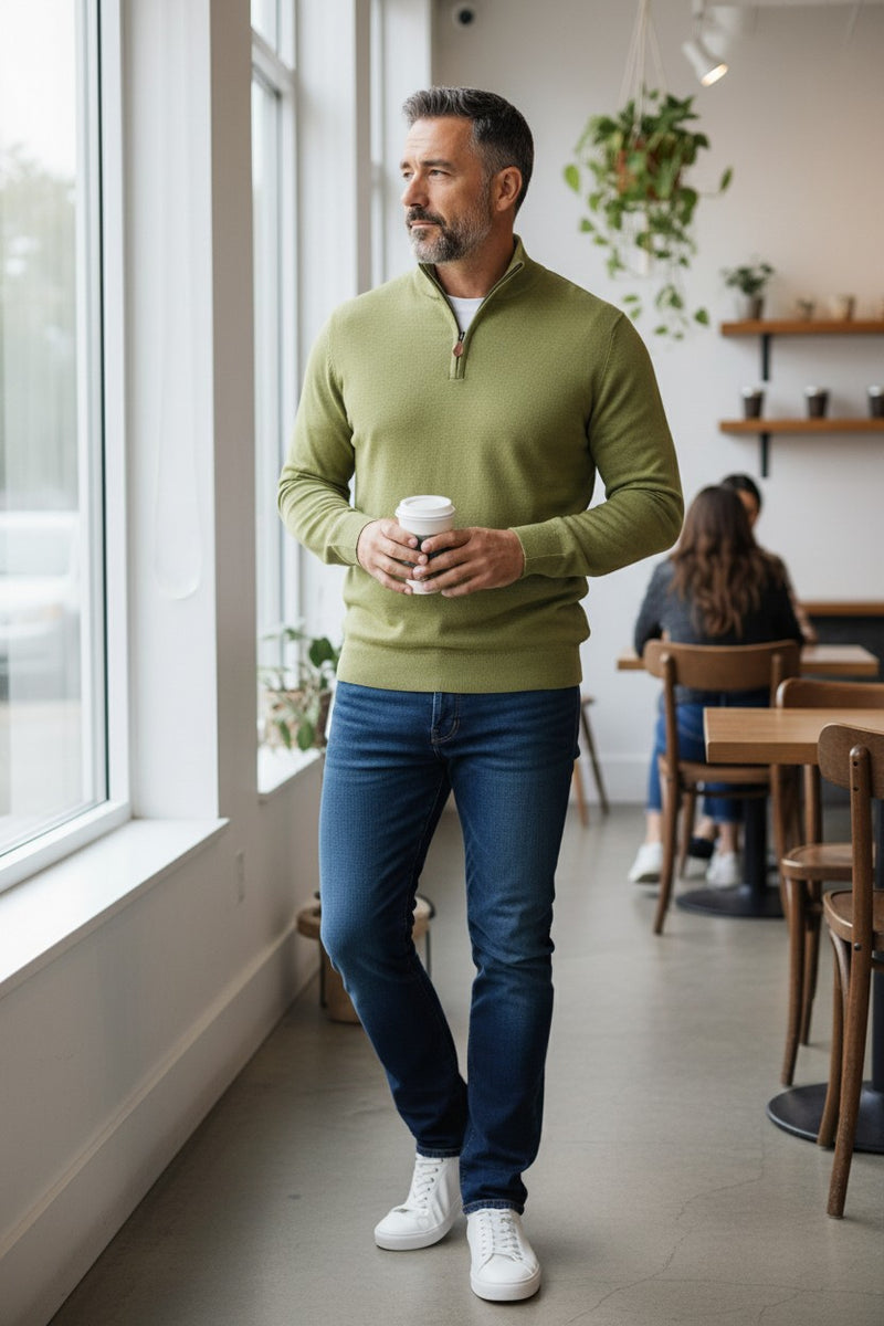 ALAN PAINE SELHURST QUARTER ZIP SWEATER - LICHEN