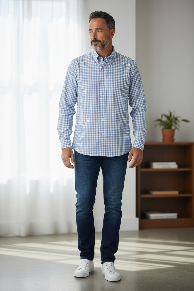 ALAN PAINE COTTON SPORT SHIRT - COUNTRY BLUE CHECK