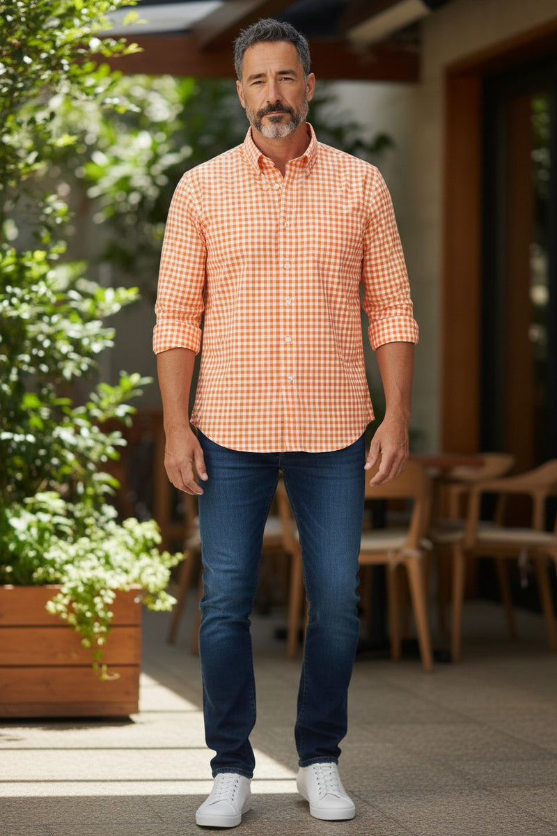 ALAN PAINE COTTON SPORT SHIRT - ORANGE CHECK