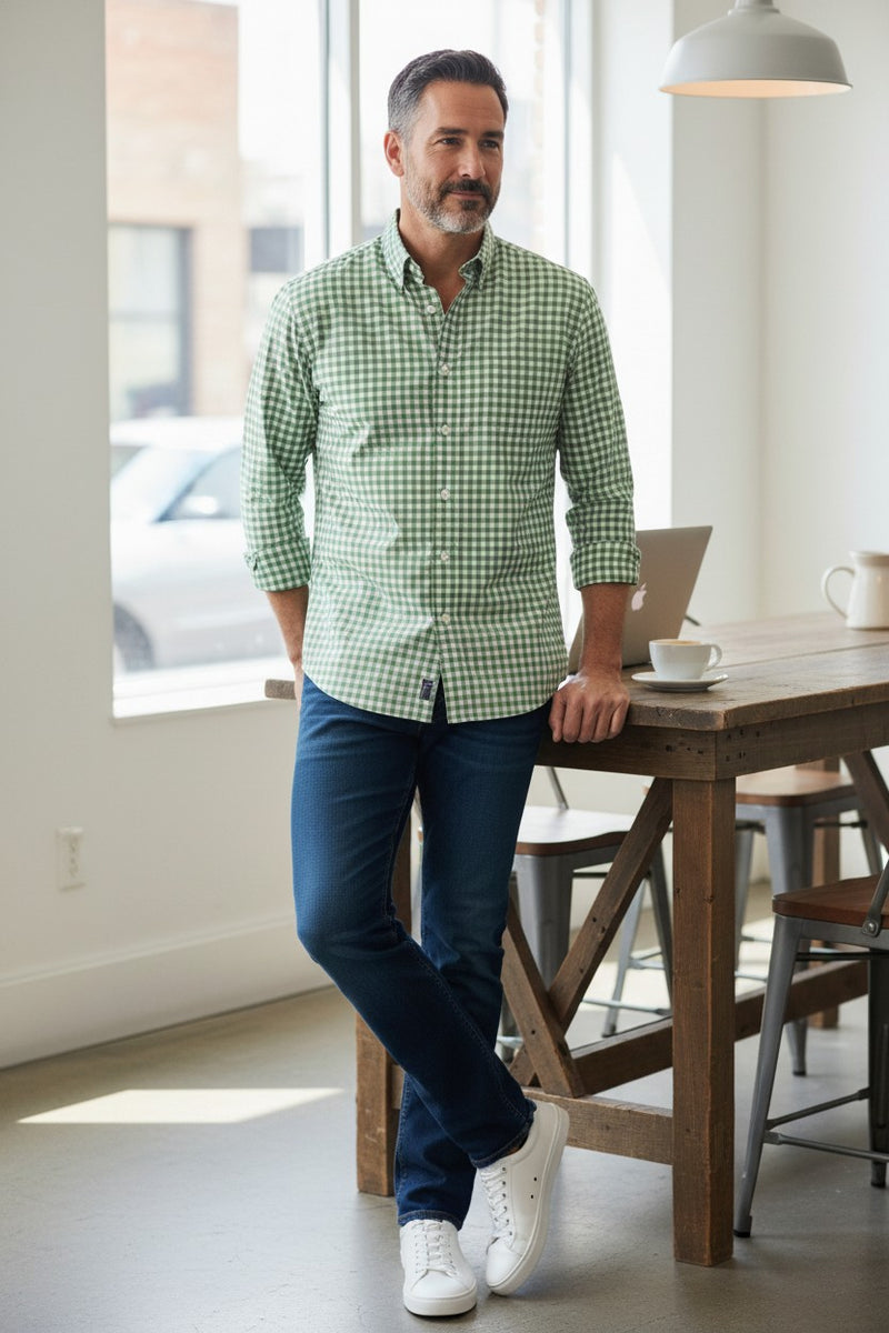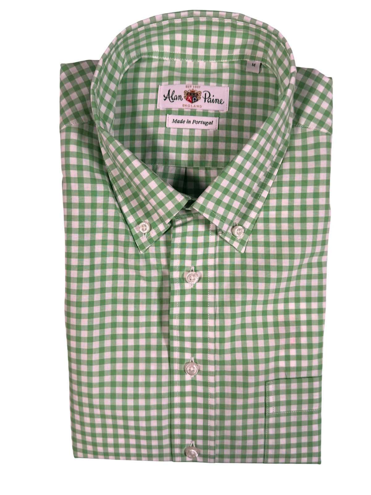 ALAN PAINE COTTON SPORT SHIRT - APPLE GREEN CHECK
