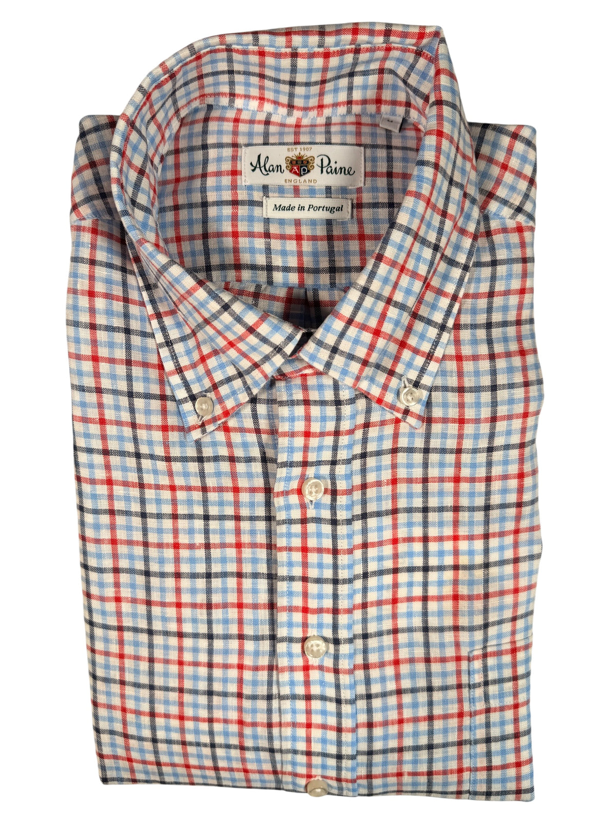 ALAN PAINE LINEN SPORT SHIRT - BLUE/NAVY/RED CHECK
