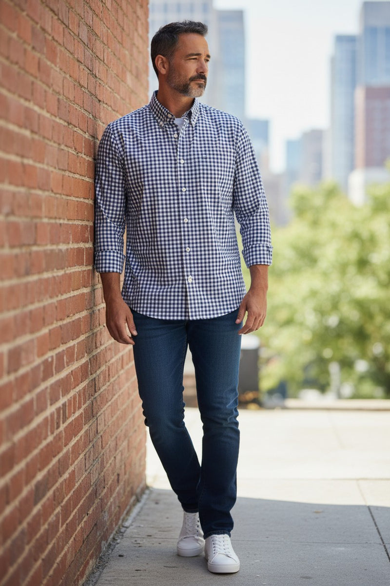 ALAN PAINE COTTON SPORT SHIRT - NAVY CHECK