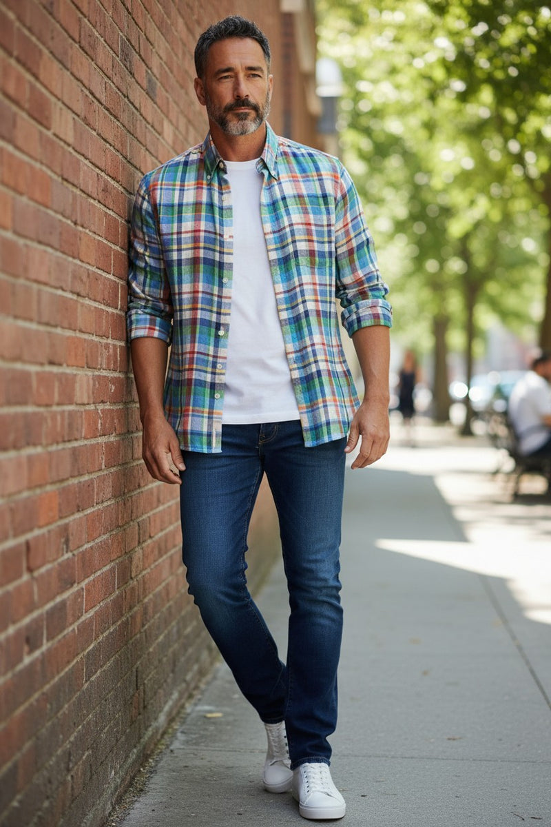 ALAN PAINE LINEN SPORT SHIRT - MULTICOLOR PLAID